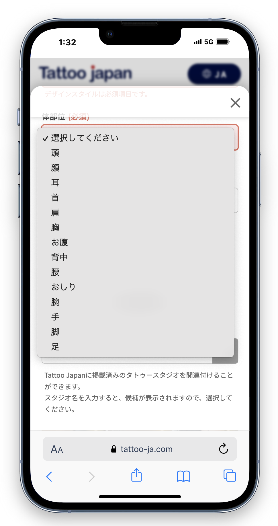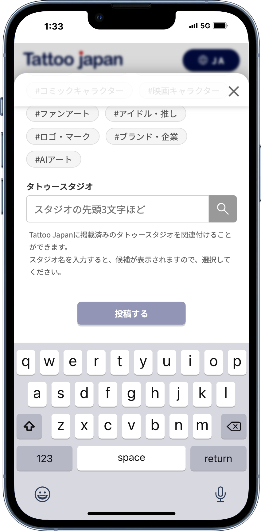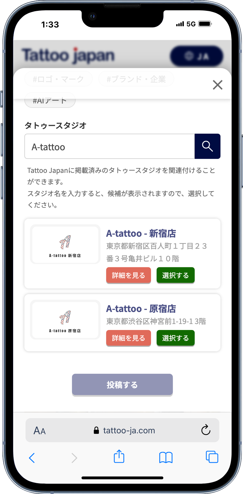 Studios not registered in "Tattoo Japan" cannot be linked, so if your desired studio isn't listed, please consider registering it.